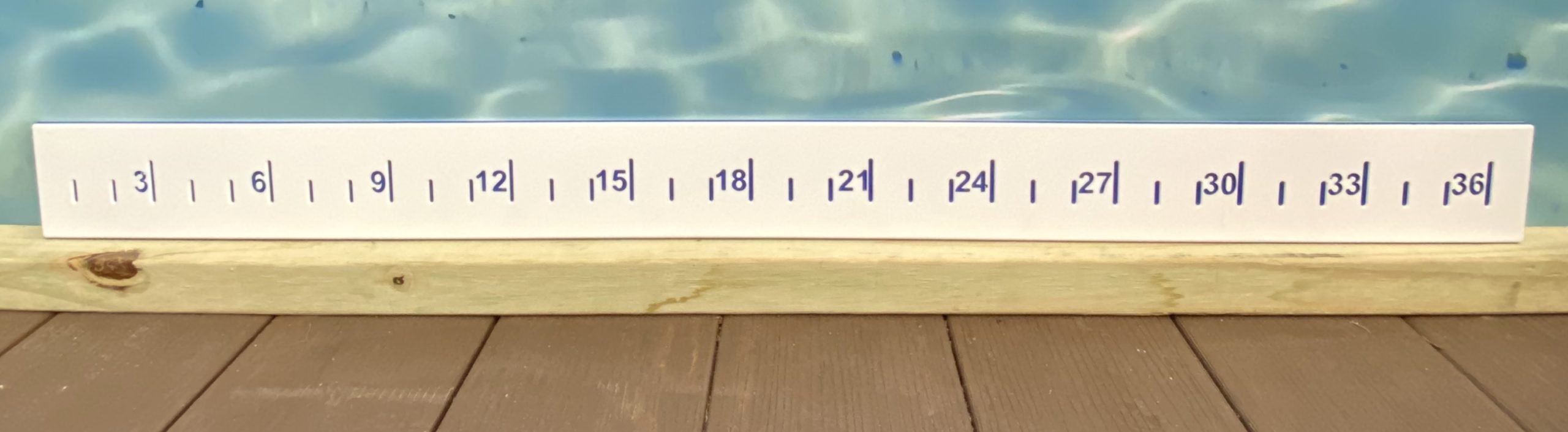 36″ Starboard measuring stick. Unlike aluminum measuring sticks this will not mark your boat or rattle like a metal ruler. Also is engraved instead of printed so the lettering will never wear out or fade away. Use it loose or mount to your boat or dock. Measure fish, cover holes or old decals. Easily cut to length if needed. Available in white with black letters or black with white letters or White with Blue letters.